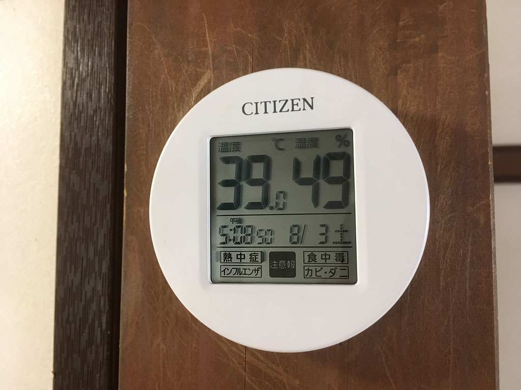 iPhone-20190803_1708とにかく今日は暑かった…、これは、今日の午後5時過ぎの我が家の2階の室温計ですが、人間の体温を超えて間もなく40℃…、ハッキリ言って、私はもう2階には1分といる事ができません…。