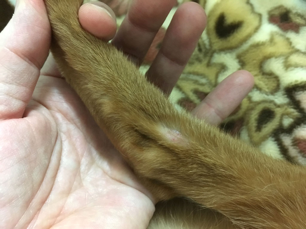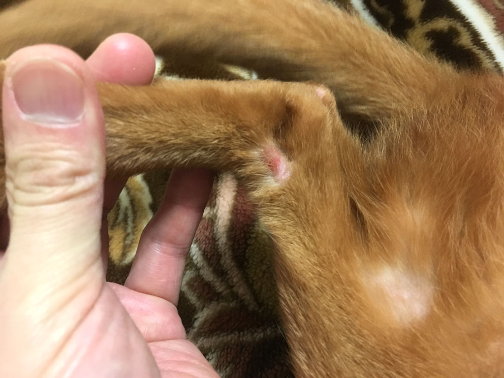 傷の原因は分かりません…、皮膚炎なのか、傷なのか…。
