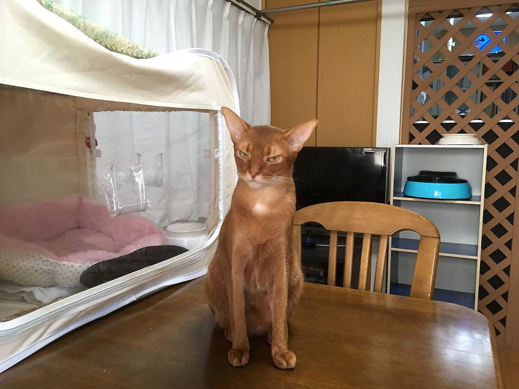 アビのすけ君は相変わらずにマイペース君です。(笑) コメントを残す 今日はロシ子のブログで時間がかかったので、アビのすけのブログは写真を2枚だけ。 これ、おとといの午後2時の間食の時間…、私が間食のカリカリを持って来たら、慌てて起きて来て、超・寝起きの顔のアビのすけ君。 この顔はもしかして不貞腐れた顔…!? この後、間食がちゅ~るではなくてカリカリだったので、超・ガッカリして、生意気にも食べず嫌いをしてくれたアビのすけ君でした。