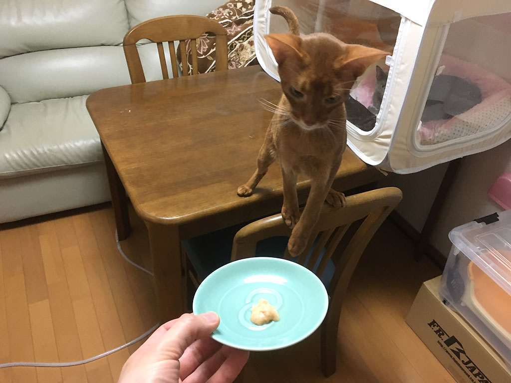 慌てっぷりって言ったら半端ない、食い意地張ったアビのすけ。 コメントを残す これは、今日の午後6時の猫たちのおやつのちゅ~るの時間…、もう、アビのすけの慌てっぷりが半端ないのです。 美味しいものは良く知っていて、午後2時にカリカリの間食の時とは明らかに違うアビのすけ君。 もう、鬱陶しい程に騒ぎまくるアビのすけ君。 早く食べたい、早く食べさせろって、顔が真剣なアビのすけ君。 こんだけ元気がありゃ大丈夫…、アビのすけは元気がありまくりなので、全く心配はしていません。
