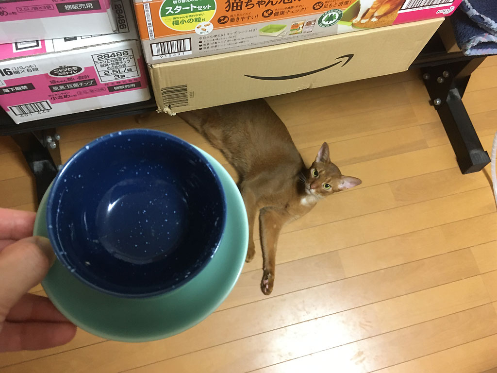 やっぱりアビのすけはめっちゃ可愛いわぁ~…、憎めない良い性格。 コメントを残す これは、昨日の夕方の6時過ぎの事、おやつのちゅ~るを食べた後、地べたのフローリングの上で転がっていたアビのすけ君。 ちょうど2週間前の9/9(月・祝)、私の母親が来ていた時に、私がいるにも関わらず母親にべったりされて、ちょっと不貞腐れてアビのすけに冷たい態度を取っていた飼主でしたが、やっぱりアビのすけは可愛いわぁ~。 本当にアビのすけって、自由気ままと言うか、マイペースと言うか、悪気のない男の子なんだよなぁ~。 食べ終わったお皿をアビのすけに近付けると、アビのすけ、めっちゃ集中…、食べる事が何よりも大好きなアビのすけ君。 ほんと、とぼけた性格をしていて、なんとも憎めないアビのすけ君です。