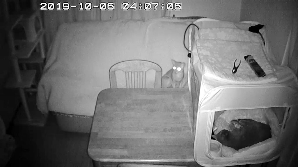 Snapshot_20191006_0406そしてこれは、昨日の未明の4時過ぎ…、昨日のブログにアップしましたが、吐いた後、ここで体をペロペロしていたアビのすけ君。
