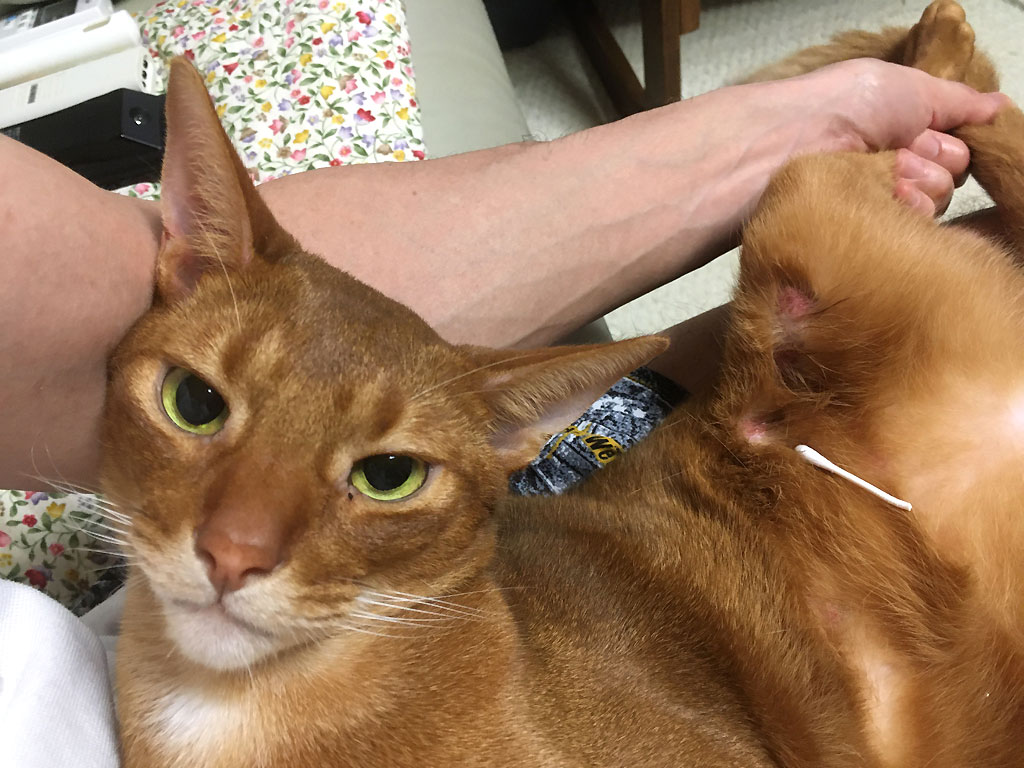 iPhone20191013_0815-2アビのすけ、皮膚炎にモメタオティックを塗るよ。