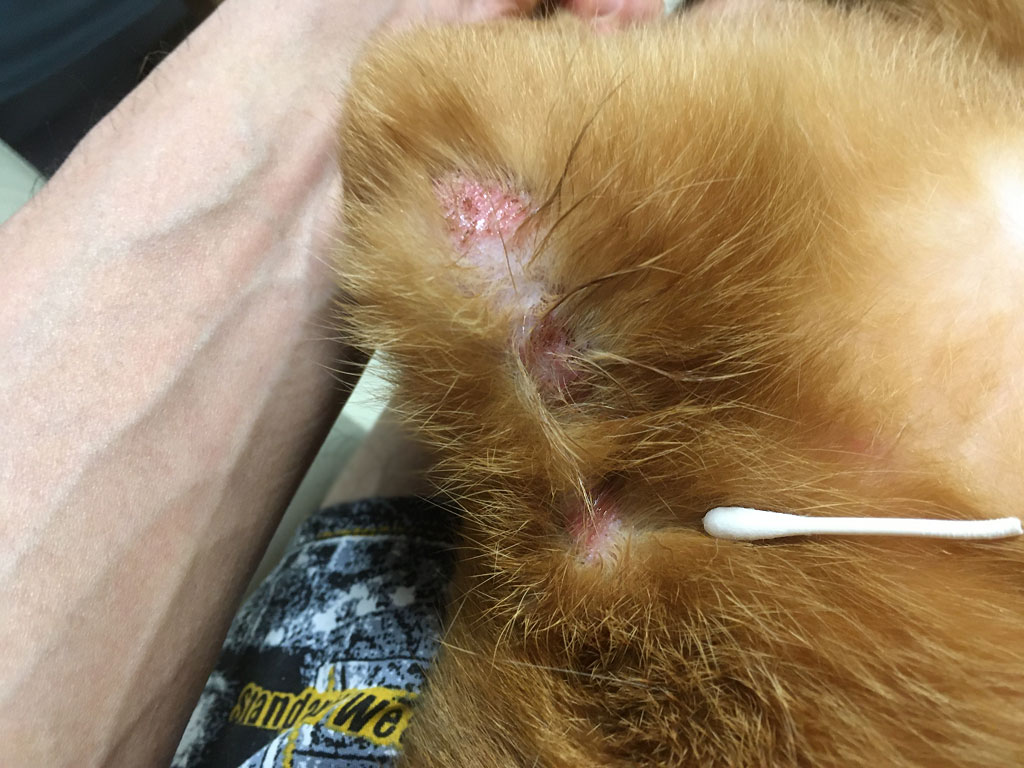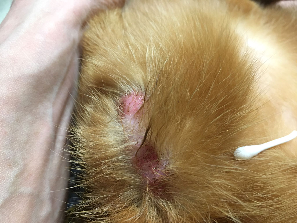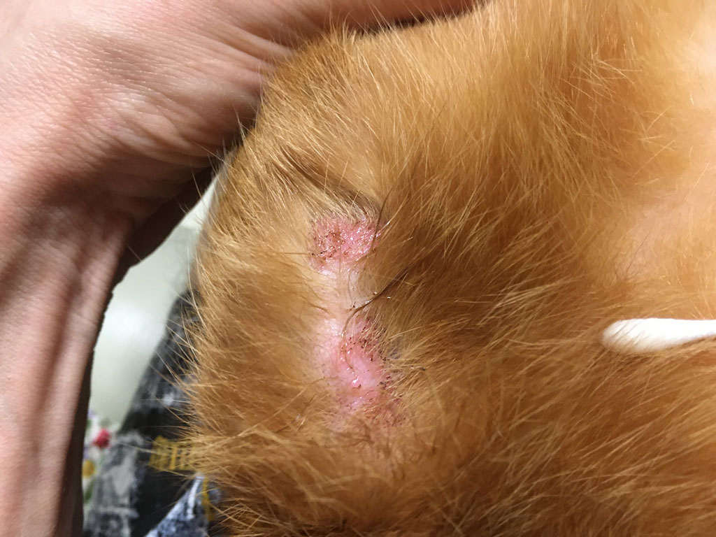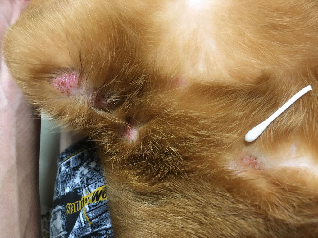 iPhone20191013_0815-1これは、おとといの朝8時過ぎ、発見してから3日目のアビのすけの皮膚炎をチェックした所。