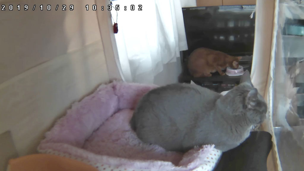 Webカメラでロシ子の向こうに写っているアビのすけ君。 コメントを残す 今日のアビのすけのブログは、写真を2枚だけ。 これは、4日前の10/29(火)の事でしたが、酸素ハウスの中のWebカメラでロシ子を見たら、向こうでアビのすけがこっちを向いていた…!? そしてその後、必死にご飯を食べていた…、能天気なアビのすけ君です。(笑)