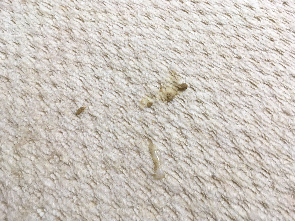 1階にビニール手袋を取りに行って戻って来たら、アビのすけ、ゲロを少し食べたな…。
