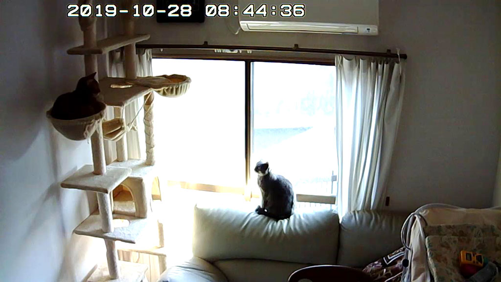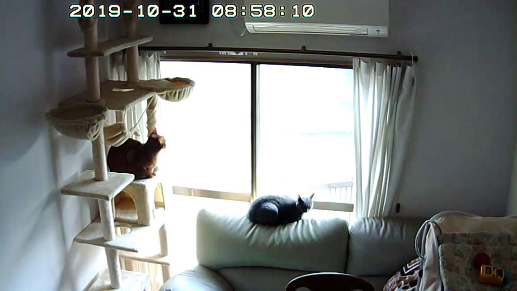 という事で、これは、何と10日も前の10/28(月)の我が家の猫たち…、ロシ子とアビのすけが揃ってここにいました。