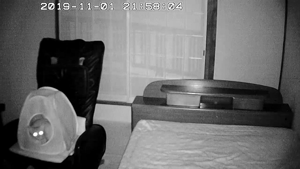 そして、その翌日の11/1(金)の晩、2階のマッサージチェアの上のキャットテントの中にいたアビのすけ君。