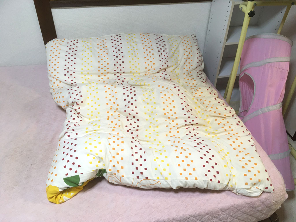 iPhone20191104_1855-2それにしても、この2階のベットの布団、今年の3/8(水)にロシ子が呼吸困難に陥ってから、私は1階のロシ子の酸素ハウスの横のソファーに泊まり込んでいたので、8ヵ月ちょっとも放置していて、めっちゃ汚れていると思うし、このままじゃ、絶対に寝れない…。
