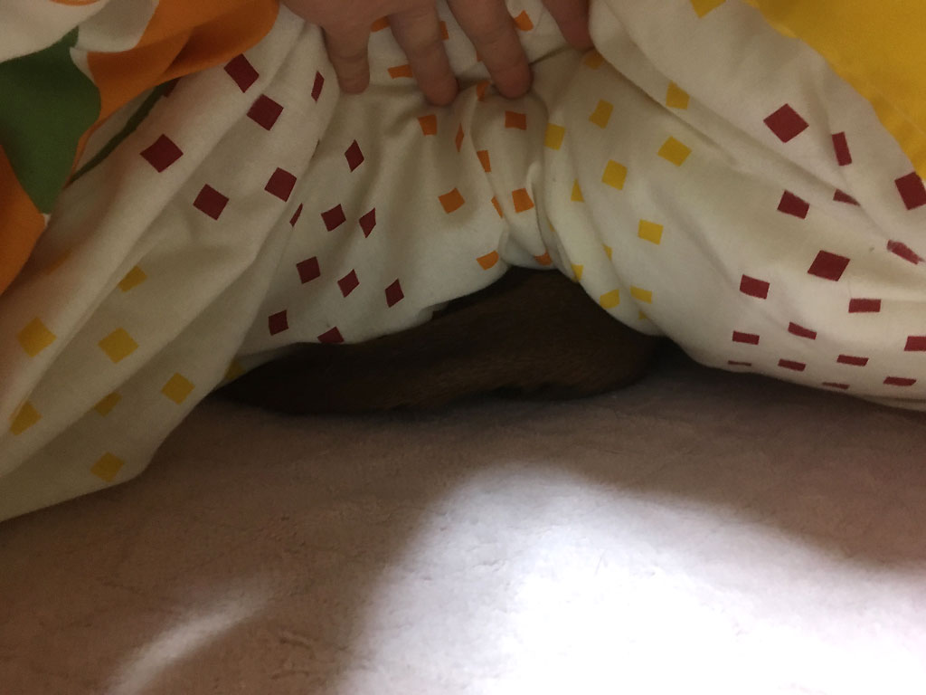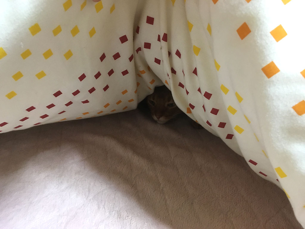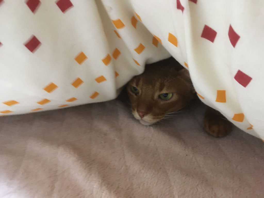 iPhone20191104_1855-3という事で、ちょっと布団をめくったら、おった、おった、アビのすけがおった。