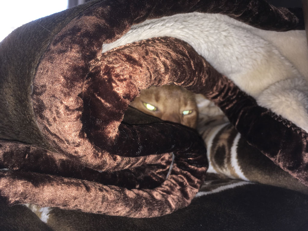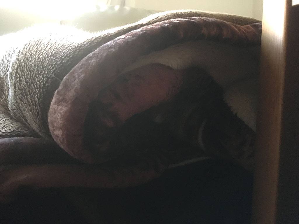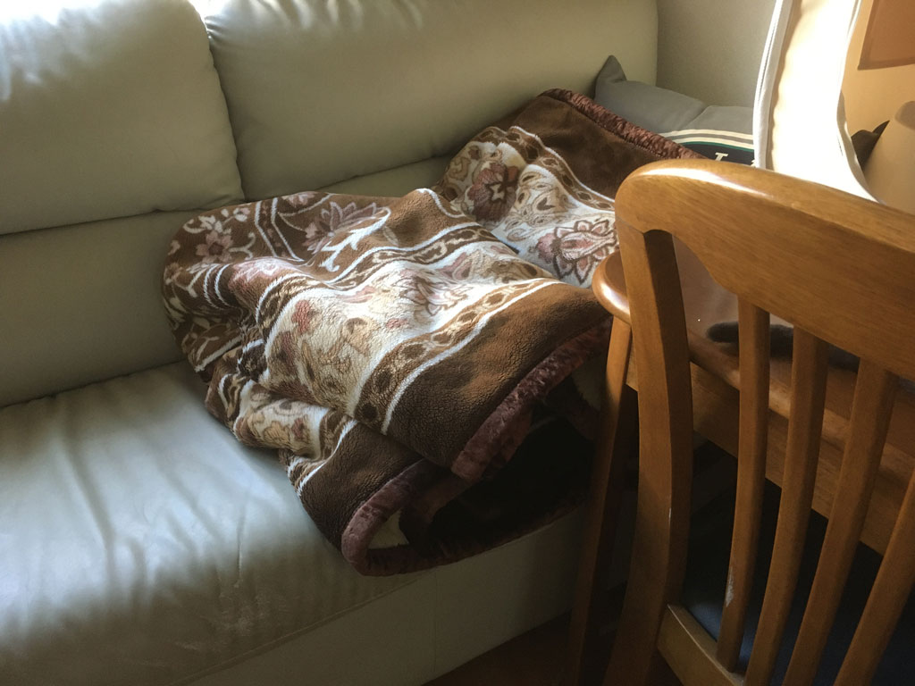毎日、毎日、この毛布の中に潜って寝ているアビのすけ君。 コメントを残す これは、昨日の昼過ぎに撮った写真…、アビのすけ君、この毛布の中で寝ています。 最近はもう、わざわざ、アビのすけの顔を覗く事はしていません…、ゆっくりと寝させてあげています。 遡る事、5日前、これは11/15(金)の午後1時過ぎの事でしたが、この日もここで寝ているのだろうと写真をパシャリ。 逆光になって暗くて分かりにくい写真ですが、この日はアビのすけの顔を覗いてしまった…、アビのすけ、この折りたたんだ毛布の隙間に潜って寝ています。 この日はちょっとだけ毛布をめくって、アビのすけの顔を拝んでやったんだ…、暗かったからフラッシュを焚いて。 もう1枚…、ごめん、ごめん、すやすやと寝ていたアビのすけの安眠妨害をした飼主でした。(汗)