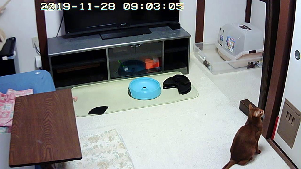 これ、お留守番の最終日、3日前の11/28(木)の事、ペットシッターさんが我が家に着いて、アビのすけがお出迎えをしている様子を撮って送って下さった写真。