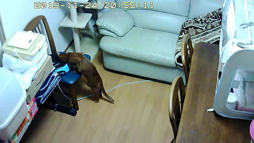 Snapshot_20191126_0500そして、そのまた翌日の11/26(火)の未明5時…、ちょっと駆け付けるのが遅かったですが、自動給餌器が動き始めて、今から椅子に乗って食べる所かな。