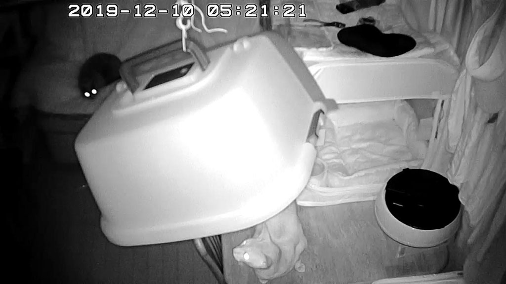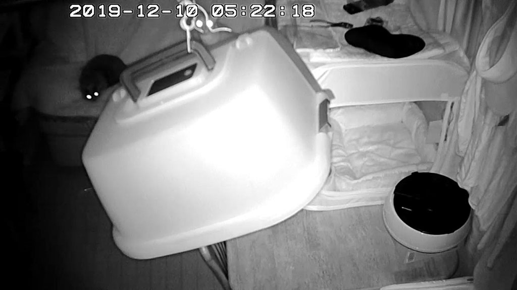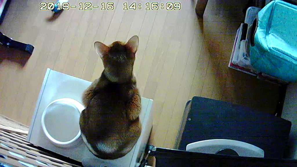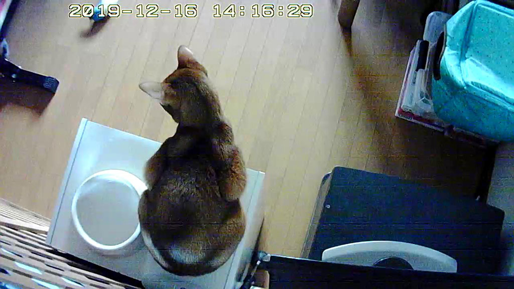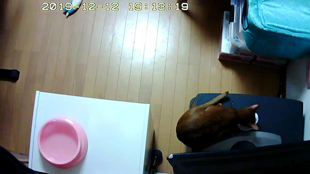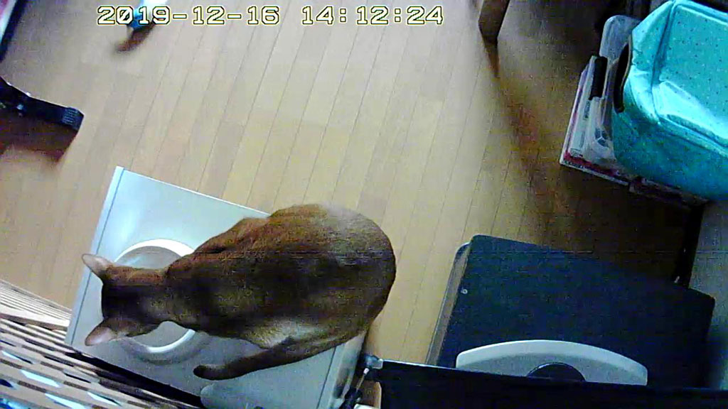 今日は、WEbカメラで撮ったアビのすけばかりです…、これは12日も前の事でしたが、12/10(火)の未明5時過ぎの事…、吊って乾かしていた猫ベットに悪戯していたアビのすけ君。