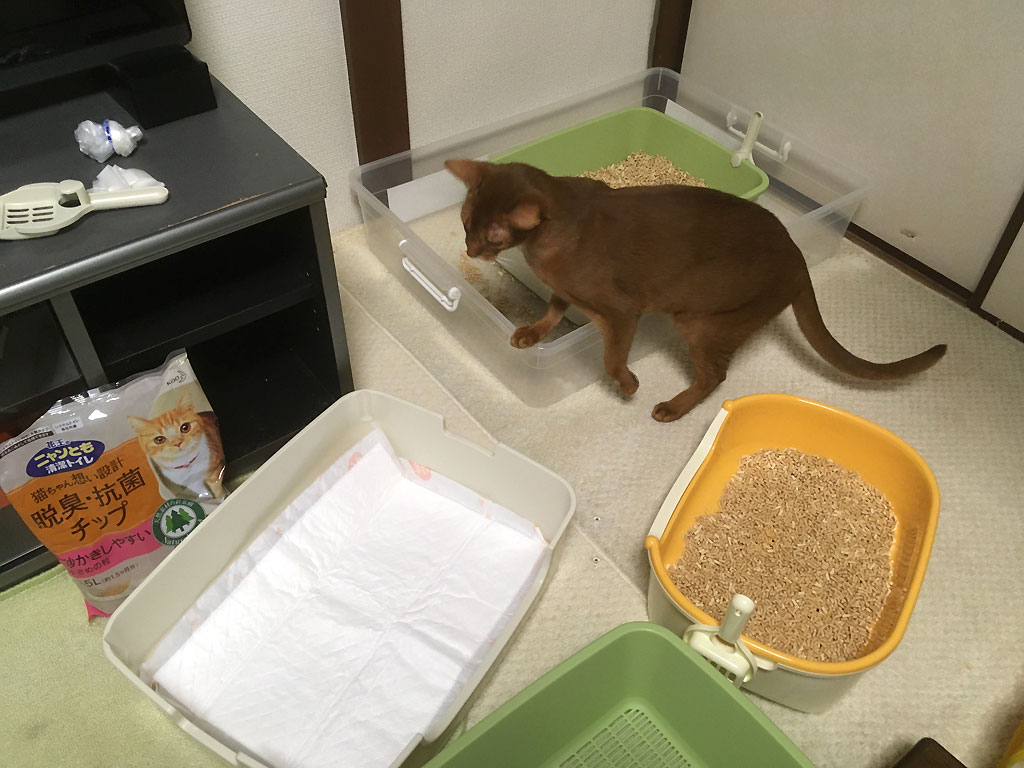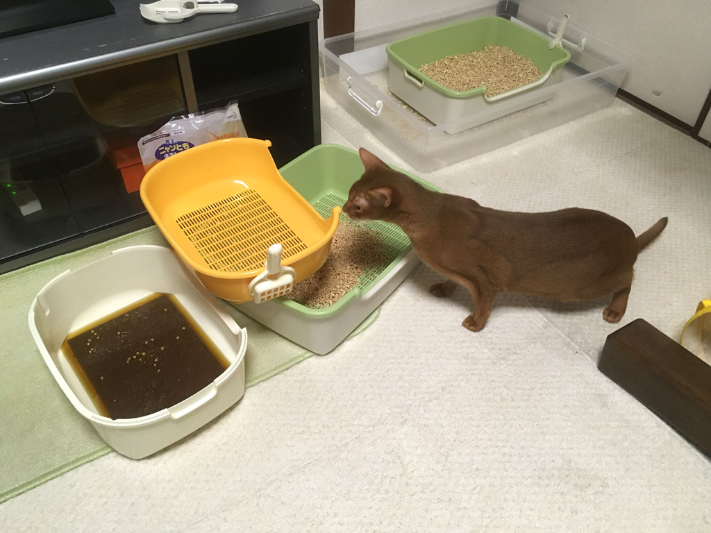 しかし、その15分後、やっぱりアビのすけの猫トイレも掃除する事にしました。