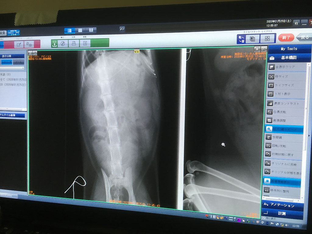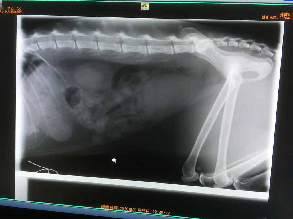 レントゲンを見てもいつもよく分からないのですが、先生のご説明によると、取り敢えず、石は詰まってないとの事、そして、尿も膀胱にパンパンに溜まっている程ではないとの事。