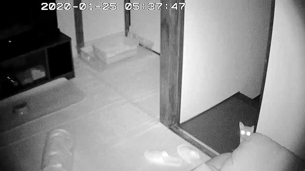 これは、昨日の未明の事、1階でトイレをしていたアビのすけ君。
