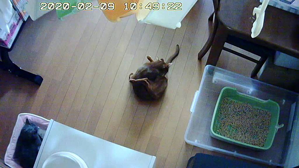 これは、その翌日の2/9(日)の午前11時前、アビのすけ君、トイレ後に股間を舐め舐めしてました。