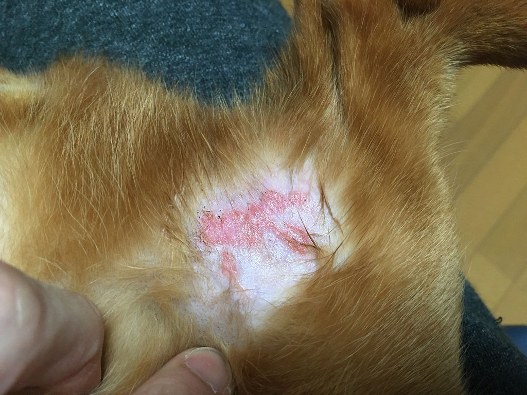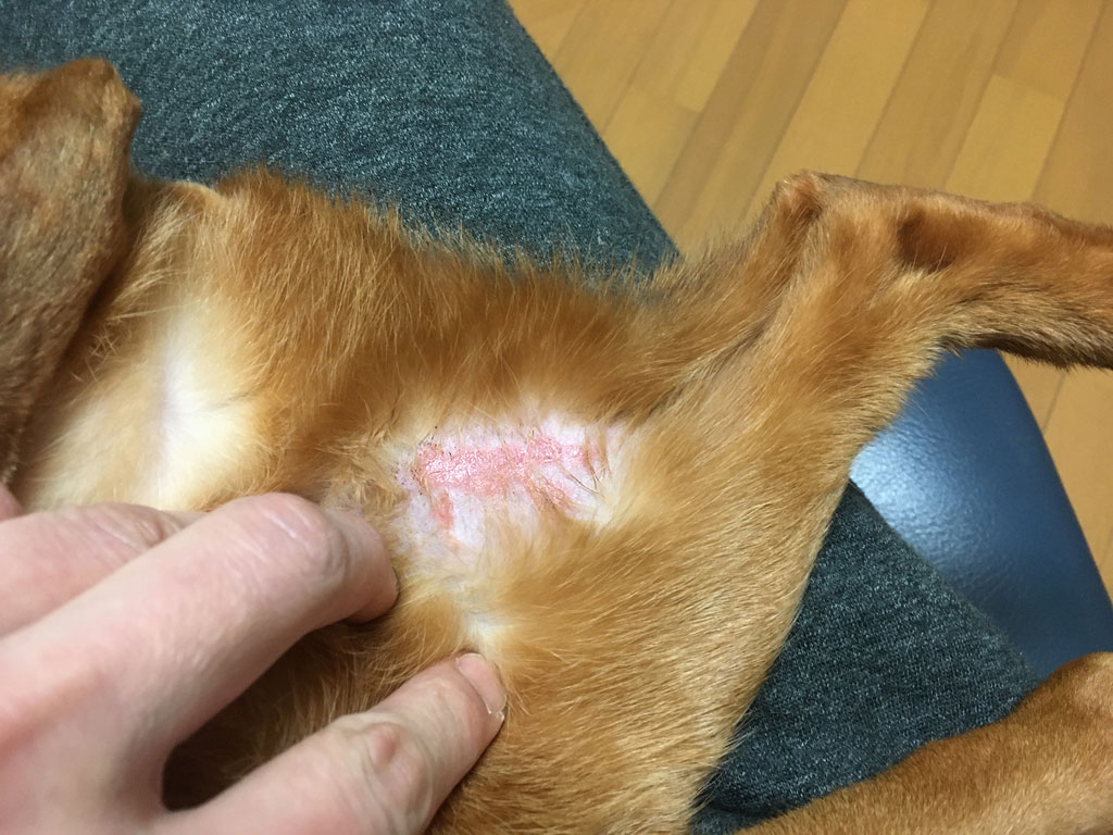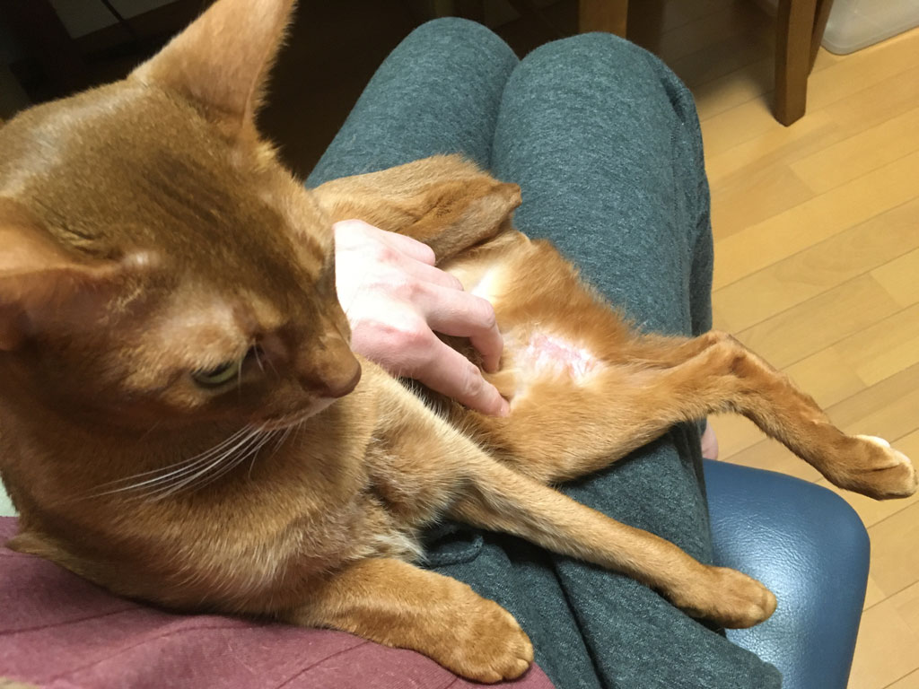 これ、4日前の2/11(火・祝)の夕方6時半、アビのすけの皮膚炎をチェックしました。