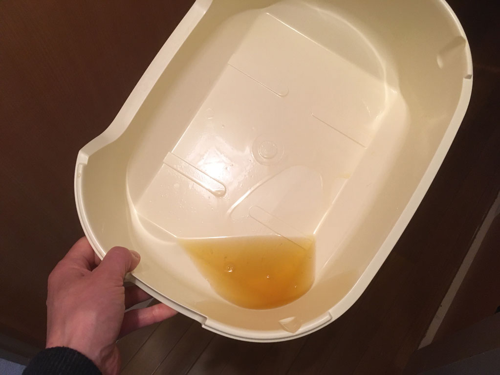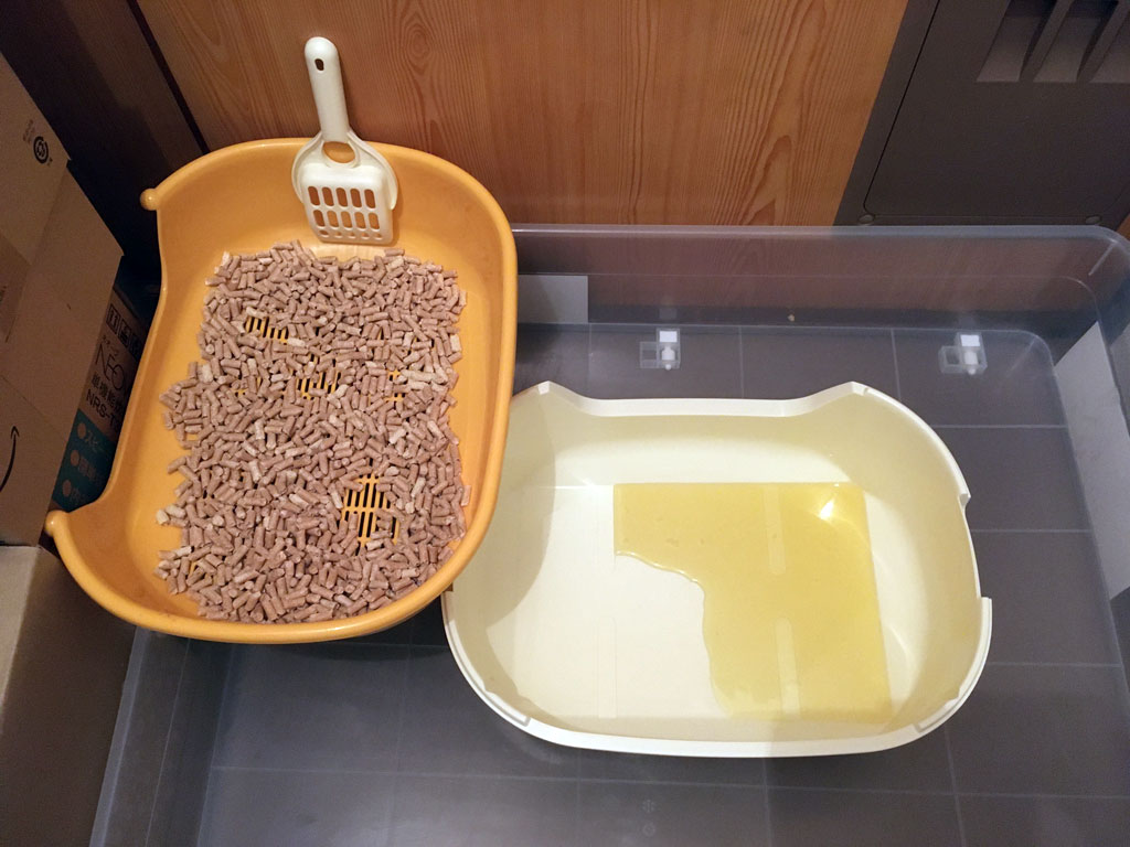 おしっこたっぷり、頻尿の様子なし、ほぼ完治だと思う。 コメントを残す これ、昨日、4年に1度のうるう年の2/29(土)の朝8時過ぎ、1階のアビのすけの猫トイレ。 この3~4日、アビのすけ、このトイレでおしっこをしていません…。 しかし、その分、2階の踊り場に置いている猫トイレに、たっぷりとおしっこをしてくれています。 この通り。 トイレを梯子する様子も見られなくなり、おしっこもすんなりと出ている感じがするので、頻尿も治ったと思う…、近々、念の為のアビのすけのおしっこ検査をしようと思っています…、ついでにロシ子の分も。 そして、時間は飛んで、これは、昨日の深夜0時を回った頃のアビのすけ君。 アビのすけには元気な姿がよく似合う…、ほんと、元気になってくれて良かったです。