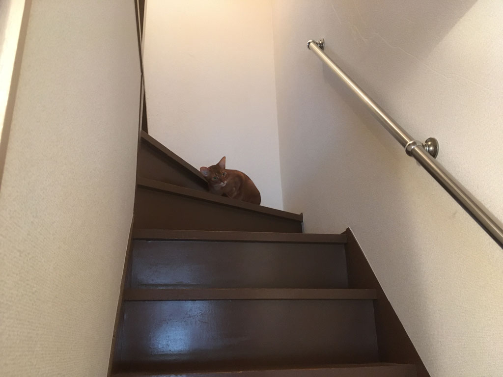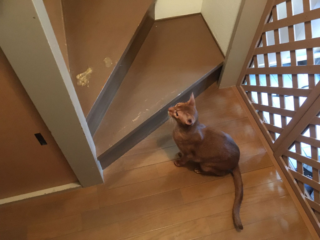 と言うのも、最近、レーザーでアビのすけとよく2階で遊んであげていて、遊んでくれってねだってるアビのすけ君…、吐いてもまったく元気。