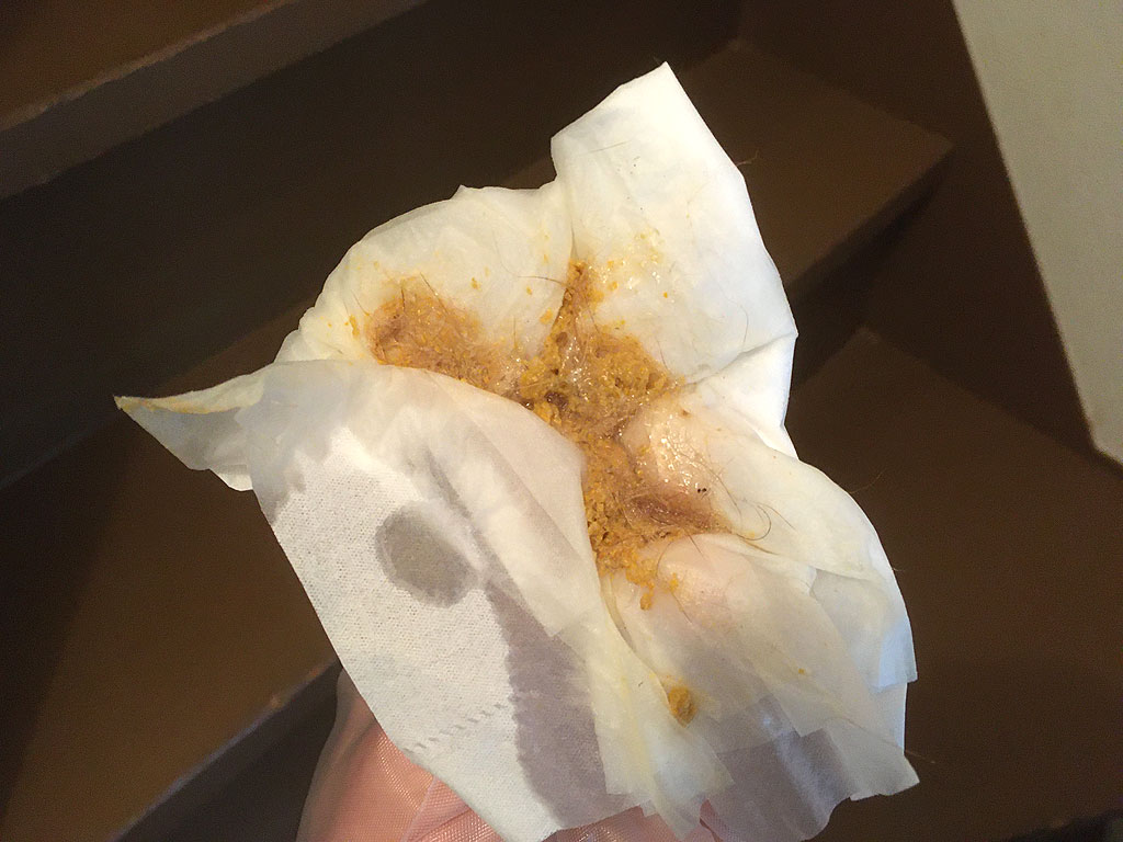 アビのすけの吐いたもの…、階段で吐いてくれたので、あっという間に掃除が完了。