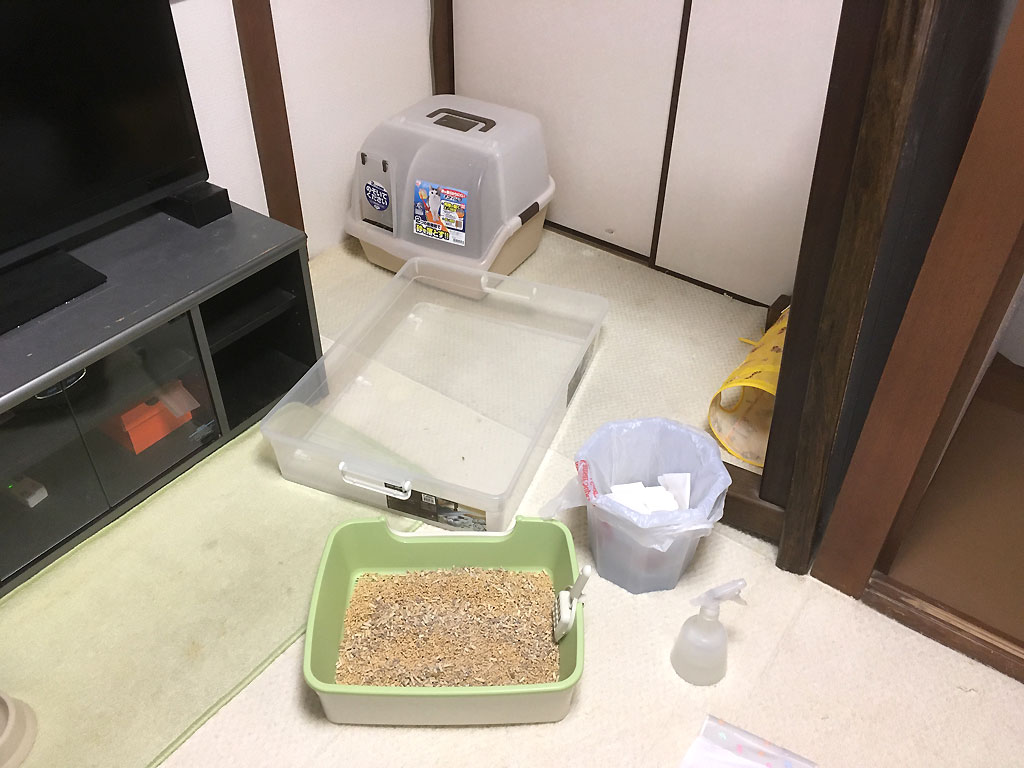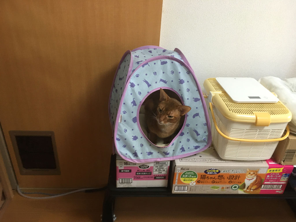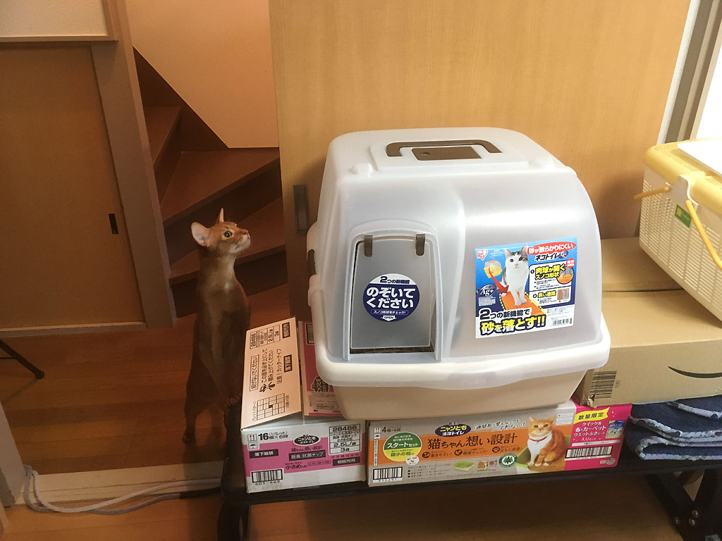 ウッドチップの猫砂のNewトイレを設置して3日目、12/5(木)のお昼過ぎ、このままじゃダメだと、環境を変えてみようと思い、New猫トイレを普段、アビのすけがずっといる、暖房が付いてる暖かい1階に移そうと考えました。